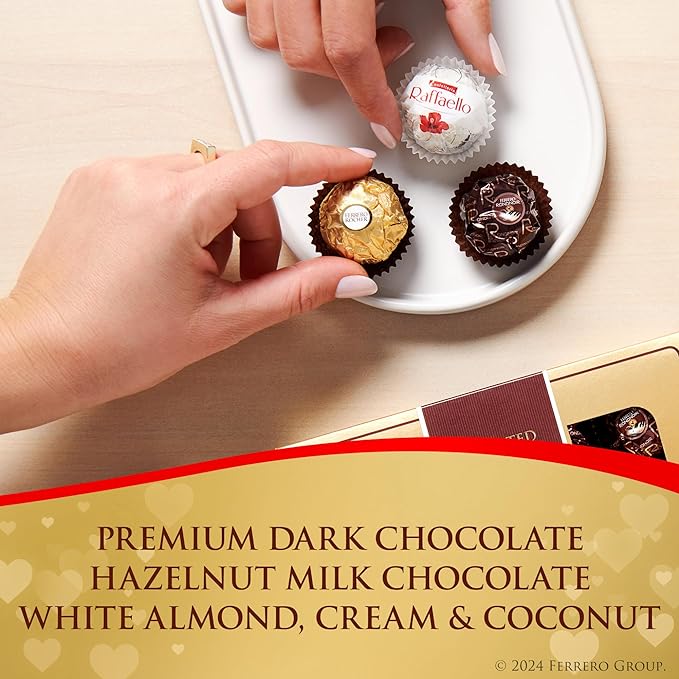 - GOURMET CHOCOLATE GIFT BOX: This Valentine’s Day, share the indulgent taste of Ferrero Collection, a trio of Ferrero Rocher, Raffaello and Rondnoir assorted chocolates inside a 48-count box of individually wrapped candy for sharing