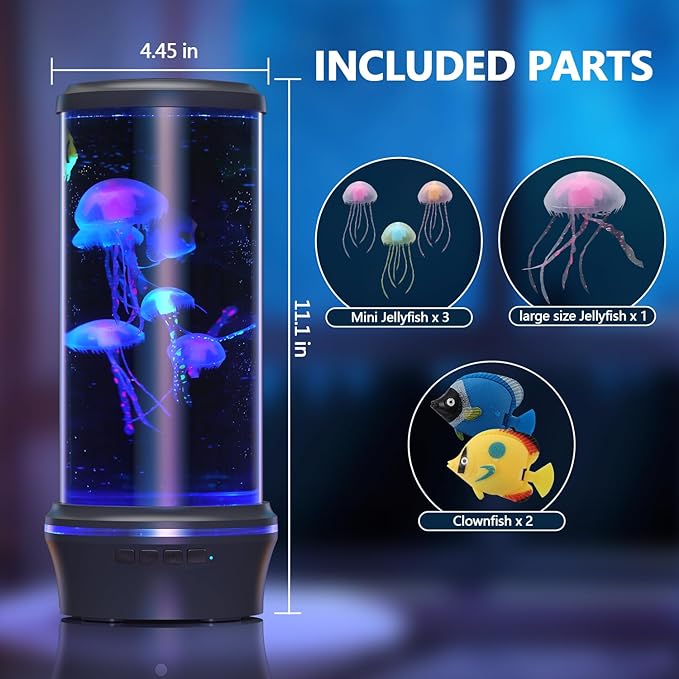 - VERY COOL GIFT: Electric Jellyfish Tank is the latest fashion ornamental tank for modern decoration and leisure. Jellyfish is realistic, give it to her or him: for kids, mom, dad, wife, everyone loves this gift, can be used as home decoration, night light, stress relief,It is a perfect, worry-free, zero-maintenance, beautiful, fun pet for all ages! It is vastly superior to owning a real fish tank and having to pay for its upkeep with both money and time. It is just as lovely and just as fulfill